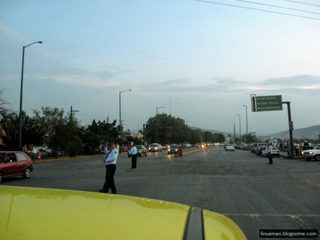 Mejor nos fuimos a visitar a una amiga que venía de Saltillo, y es claro que el suceso llama la atención de todos, hasta los polis estaban tomando fotos con su celular, el tráfico puede esperar :P