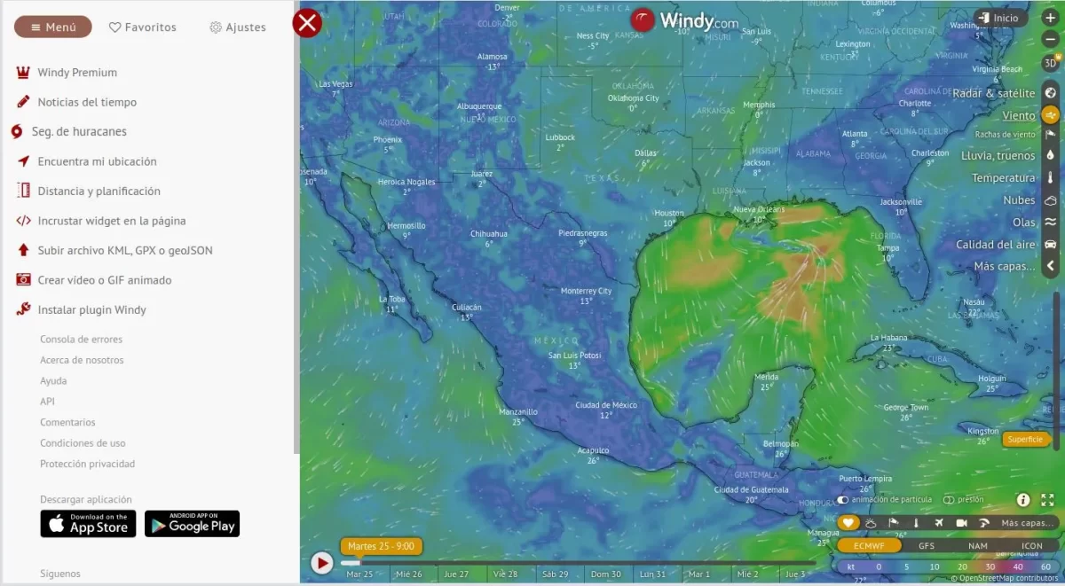 Afortunadamente hay una buena alternativa con Windy . Sólo que su opción para hacer seguimiento de huracanes esta un poco oculta.