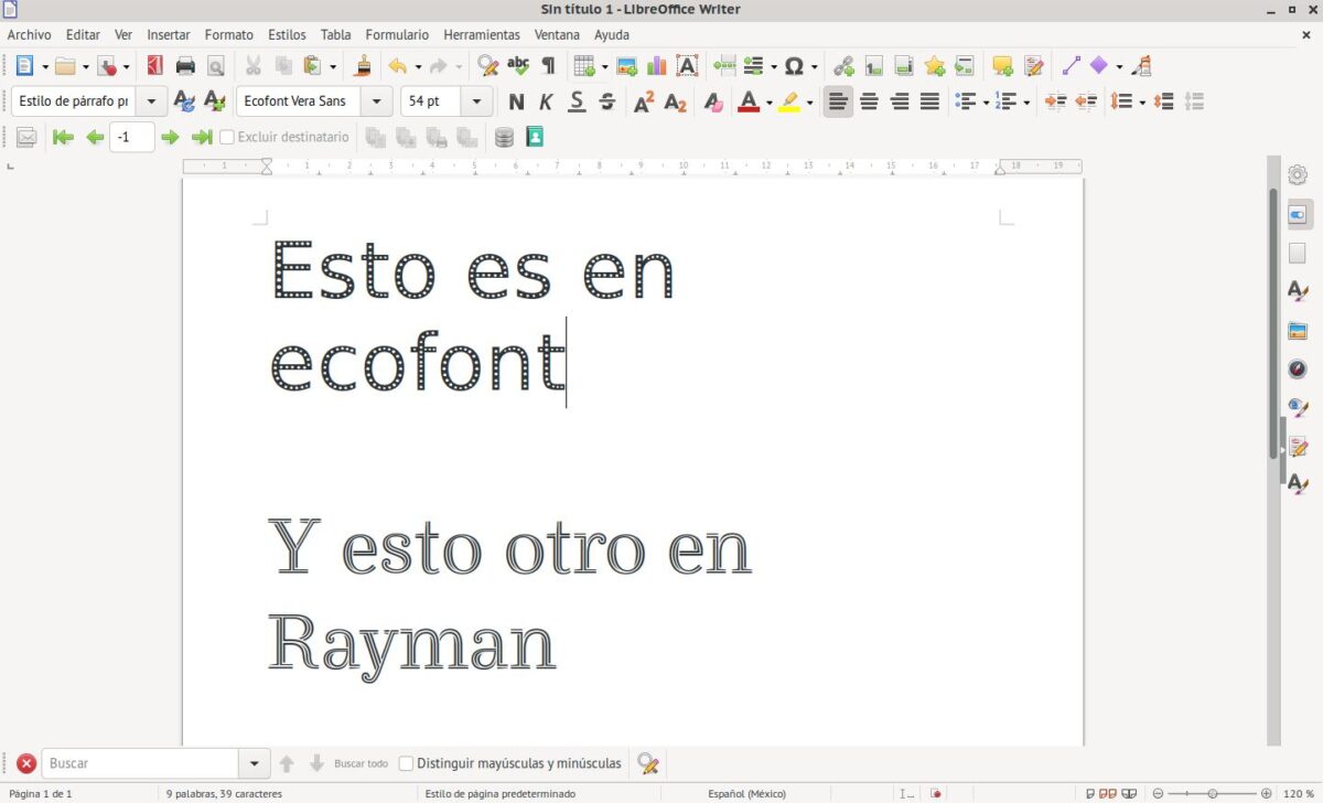 El principio de la Ecofont es muy sencillo, el interior de la fuente esta repleta de pequeños círculos, y al no tener que imprimir esos puntitos se ahorra tinta y tóner.