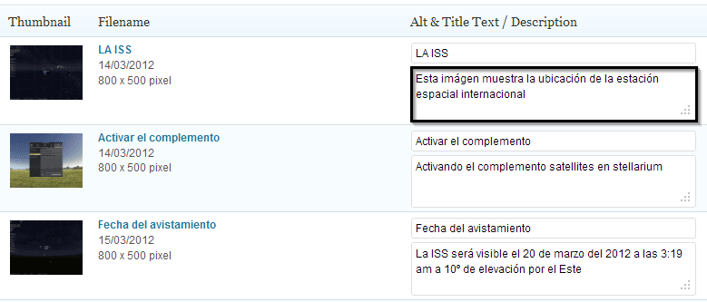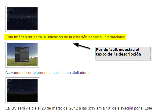 De esa manera muestra en la parte inferior el texto ALT en lugar de la Descripción.