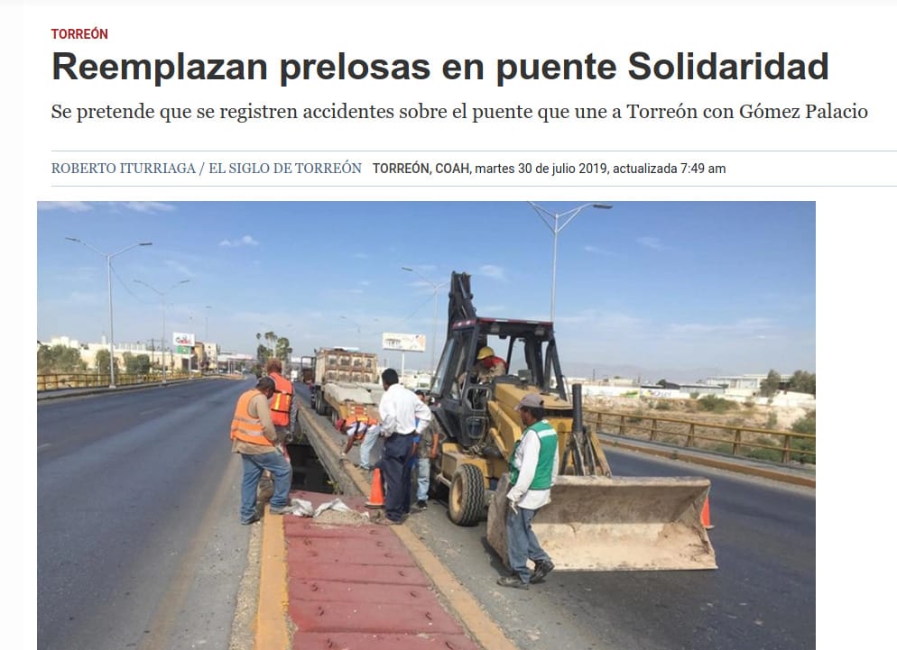En el 2008 volvio a correr agua en el Nazas y se puso a prueba la fortaleza de los puentes contruidos. El puente Solidaridad sufrio varias deformaciones, pero logró mantenerse en pie. ¿Recuerdan que durante un tiempo al pasar se sentía un desnivel?, mismo que se encargaron de tapar con pavimento.