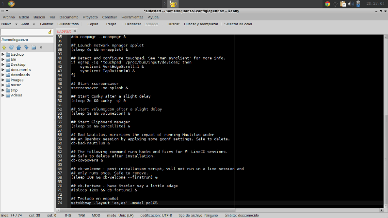 Trabajando con CrunchBang me di cuenta de que el editor de textos es Geany y me pareció una magnifica opción, busque un poco como hacer que pudiera verificar la ortografía en español, solo me faltaba instalar este paquete: