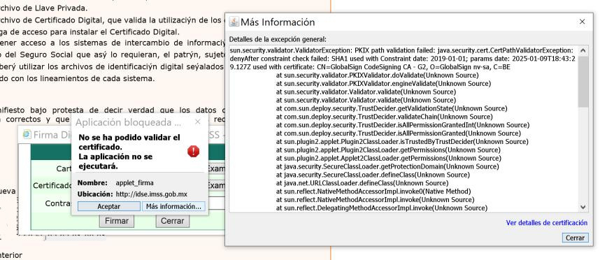 Todo parecía funcionar correctamente, pero en un momento del procedimiento no pude firmar el certificado por un problema con el applet_firma.