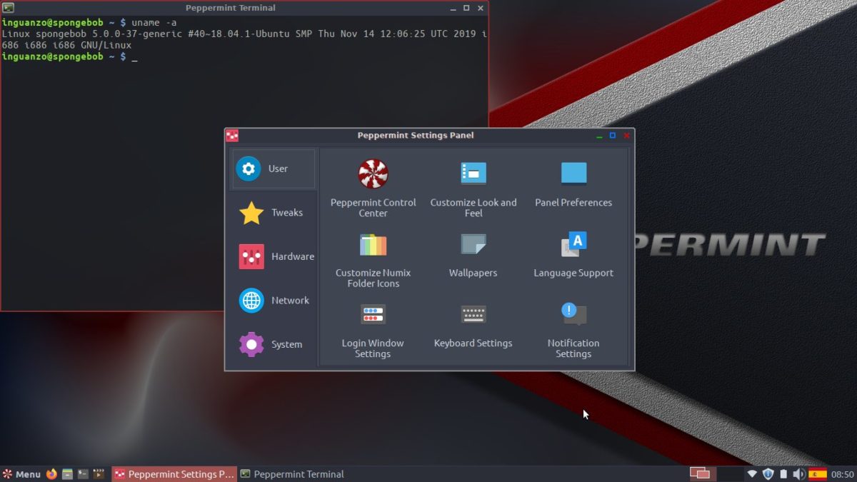 Al ser una distribución basada en Ubuntu me adapté rápidamente. Actualizar e instalar paquetes con apt-get. Pero aparte ofrece varias amenidades como un Panel de control conocido como el Peppermint Settings Panel que agrupa todo lo necesario para poner a tono la distribución.