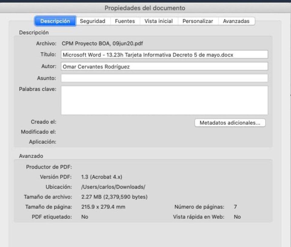 Una simple inspección de los metadatos del archivo indicaron que el origen del documento era interno, dentro del mismo gobierno federal. Y por eso ya no se ha hablado del tema.