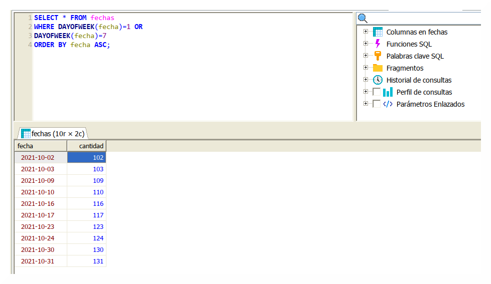 DAYOFWEEK(fecha)=7